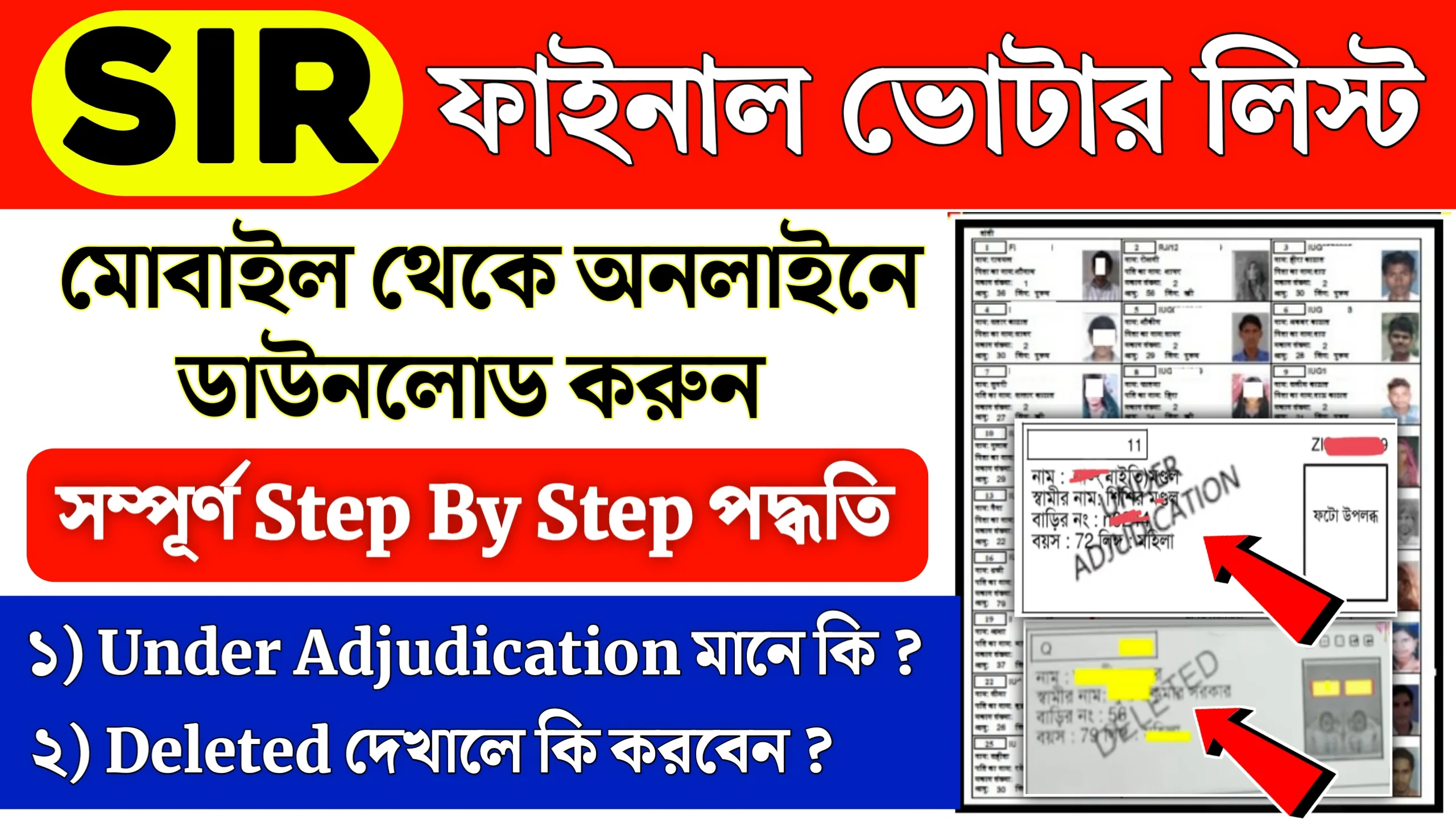 পশ্চিমবঙ্গ SIR ফাইনাল ভোটার লিস্ট ২০২৬ প্রকাশ: কিভাবে ডাউনলোড করবেন? Under Adjudication ও Deleted মানে কী?